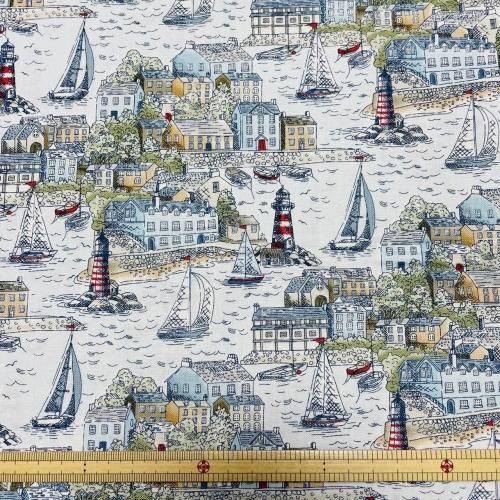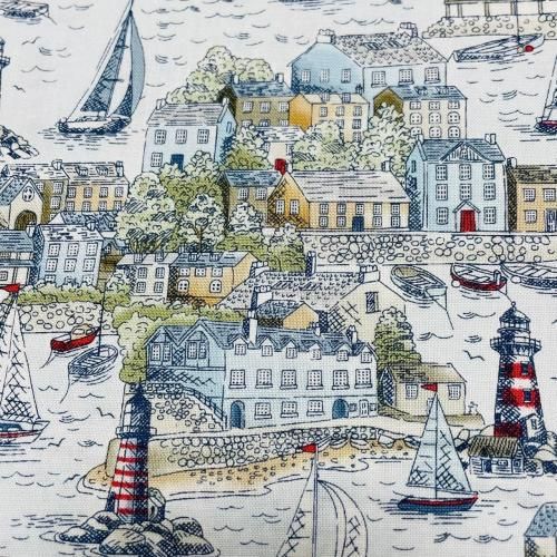 Makower UK High Tide Harbour View Light Blue 港町の風景 ライトブルー